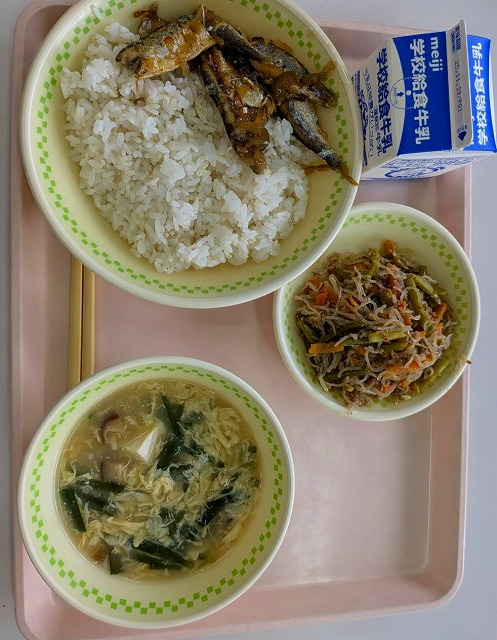 今日(きょう)のこんにゃくのピリ辛(から)いためを好(す)き嫌(きら)いせずに、しっかりといただいて下(くだ)さいね。【今週の給食「ひとくちメモ」より】