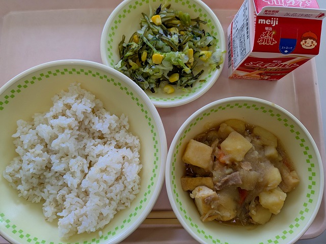 【今日の給食】3月6日(金) 2026年3月9日 ★じゃがいもが届きました。 みなさんこんにちは今日の献立は、姉妹都市である鹿児島県の和泊町とのコラボ給食です。 和泊町からじゃがいもを無償提供していただき、和泊町の給食センターさんからいただいた献立となって います。地域で大切に育てられた食材を、給食として味わえることは、とても貴重な機会ですね。 【今週の給食「ひとくちメモ」より】