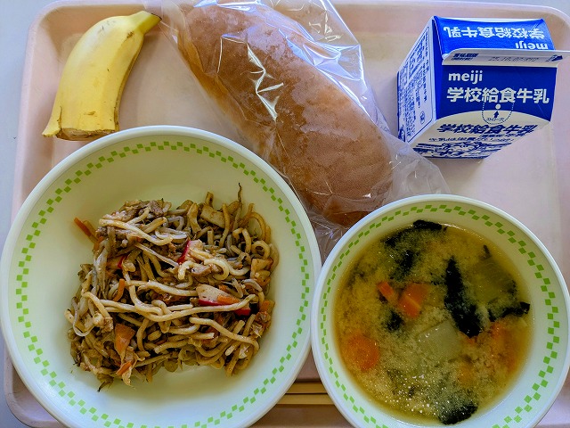 今日(きょう)は、主食(しゅしょく)のラーメンについてのお話(はなし)です。ラーメンは、日本(にっぽん)各地(かくち)で食(た)べられていますが、元々(もともと)は中国(ちゅうごく)で食(た)べられていた料理(りょうり)です。日本(にほん)ではじめにラーメンを食(た)べたのは、水戸(みと)黄門(こうもん)でおなじみの徳川光圀(とくがわみつくに)だったそうです。今日(きょう)の給食(きゅうしょく)では、豚肉(ぶたにく)、きゃべつ、もやし、コーン、が使(つか)われています。栄養(えいよう)満点(まんてん)の給食(きゅうしょく)をしっかり味(あじ)わってくださいね。