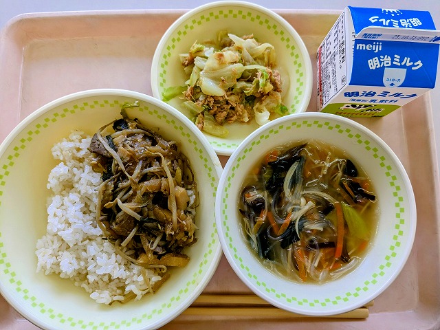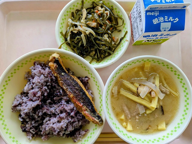 みなさん、給食(きゅうしょく)で毎日(まいにち)出(で)る牛乳(ぎゅうにゅう)を飲(の)んでいますか?なぜ、給食(きゅうしょく)に毎日(まいにち)牛乳(ぎゅうにゅう)が出(で)るのか知(し)っていますか?今(いま)の皆(みな)さんの体(からだ)は、大人(おとな)以上(いじょう)に栄養(えいよう)を必要(ひつよう)としています。その必要(ひつよう)としている栄養(えいよう)素(そ)をバランス良(よ)く手軽(てが)に摂(と)れる食品(しょくひん)として牛乳(ぎゅうにゅう)が出(だ)されています。また、20歳(はたち)をこえるとカルシウムは吸収(きゅうしゅう)されにくい体(からだ)になっていきます。今(いま)たくわえるカルシウムが皆(みな)さんの一生(いっしょう)の骨量(こつりょう)を決(き)めます。嫌(きら)いだから飲(の)まないではなく、飲(の)めるように工夫(くふう)してくれると嬉(うれ)しいです。【今週の給食「ひとくちメモ」より】