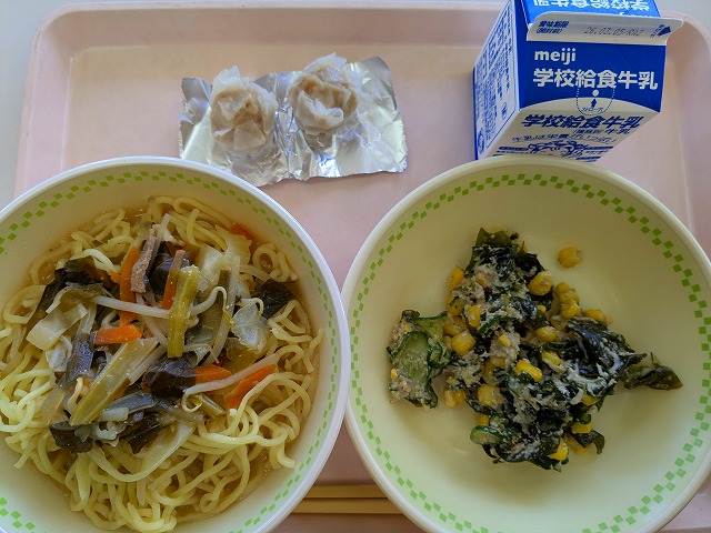【今日の給食】2月26日(木) 2026年2月26日 ★キムチ キムチは、野菜を発酵させて作る韓国の伝統的な漬物です。 発酵することで、うま味が増え体の調子をととのえるはたらきがあります。 給食では、低学年のみなさんでも食べやすいように、辛さをひかえめにして 作っています。 野菜キムチラーメンの味を楽しみながら食べてくださいね。【今週の給食「ひとくちメモ」より】